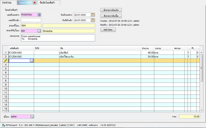 คือ การเพิ่มไอเทมในการโอนสินค้า |